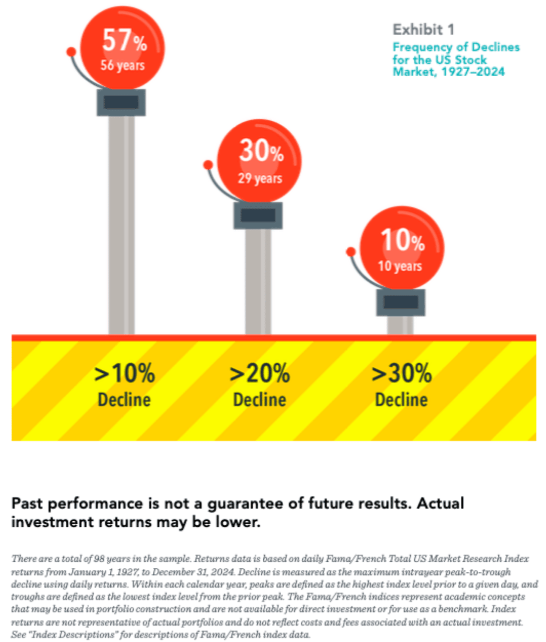 "The odds are that investors will be tested with a downturn. US stocks have experienced a downturn of at least 20% at some point during 29 of 98 calendar years since 1927.